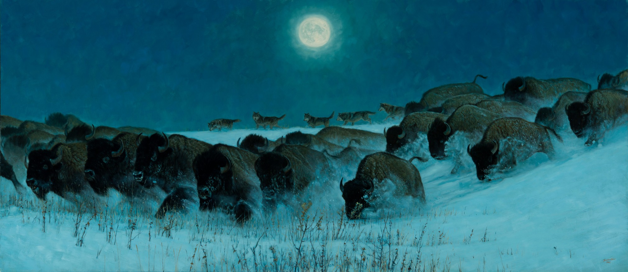 Under a Wolf Moon, oil on Belgian linen, 44h x 100w in